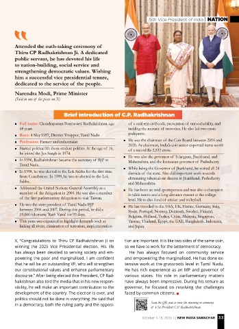 Brief introduction of C.P. Radhakrishnan