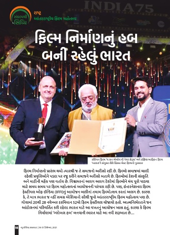 ગોવામાં 20થી 28 નવેમ્બર દરતમયાન 52મો ડફલ્મ ફસ્ીવલ યોજાયો િતો. આત્મનનભ્ષરતાને જન