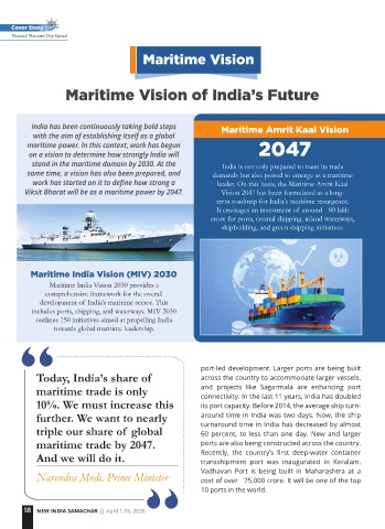 Viksit Bharat will be as a maritime power by 2047. Vision 2047 has been formulated as a long-
