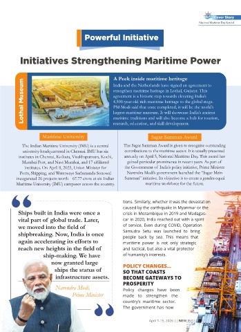 The Indian Maritime University (IMU) is a central The Sagar Samman Award is given to recognise outstanding