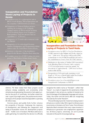 the prosperity of Keralam. Continuing this trajectory investments in Keralam and Tamil Nadu, Prime Minister